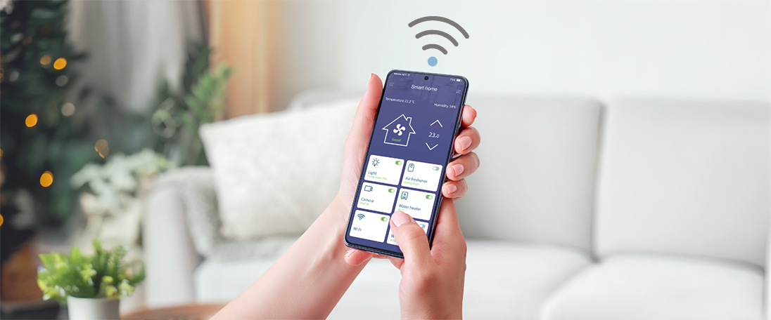 我們還可以透過手機App,隨時掌握居家環境的空氣品質,從PM2.5含量到溫度及濕度,都能即時監測並自動調節,享受全天候的健康防護。